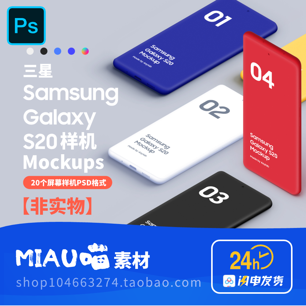 三星手机Galaxy S20模型粘土风格Mockups样机20个PSD格式/非实物