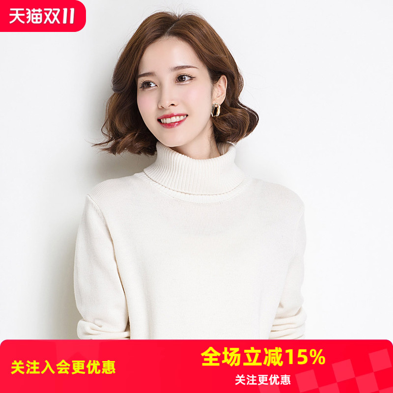 秋冬羊毛衫女士半高领宽松加厚毛衣洋气套头羊绒衫短款针织打底衫