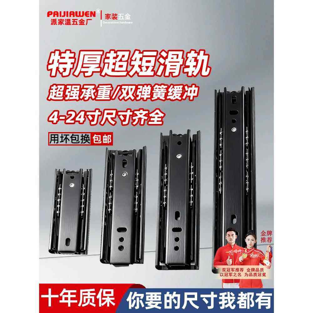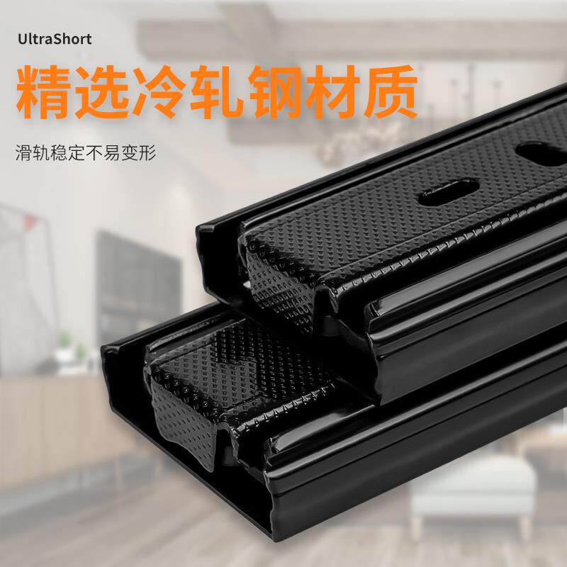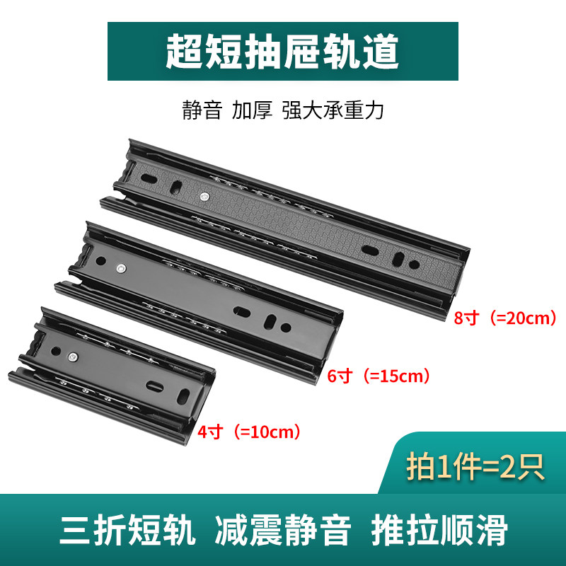 超短三节静音滚珠导轨橱柜抽屉轨道4寸5寸6寸8寸15厘米三折小滑轨