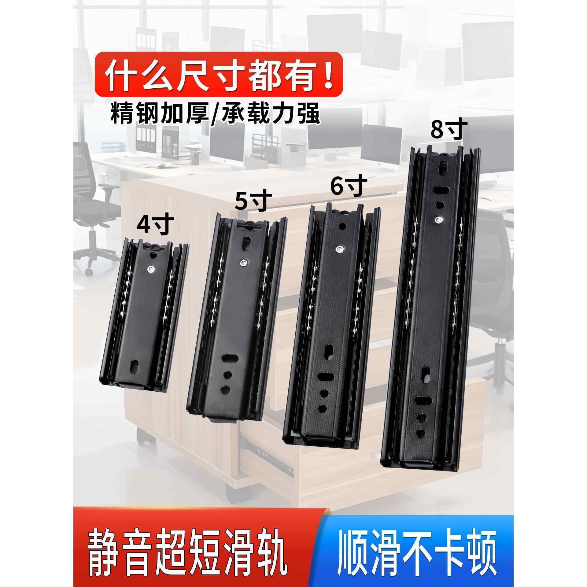超短三节滑轨静音抽屉滑道轨道4寸5-6-8寸小滑轨阻尼缓冲推拉导轨