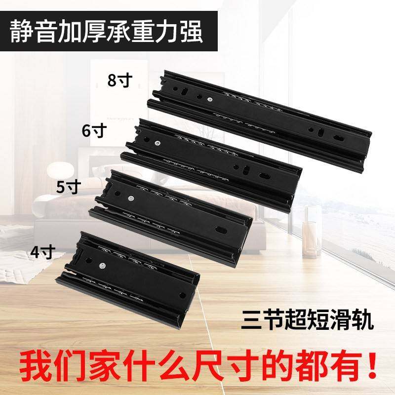 超短三节轨道静音滚珠导轨4寸5寸8三折小滑轨抽屉滑轨6寸抽屉轨道