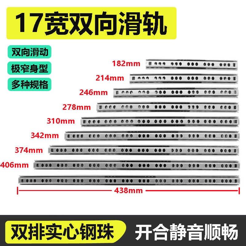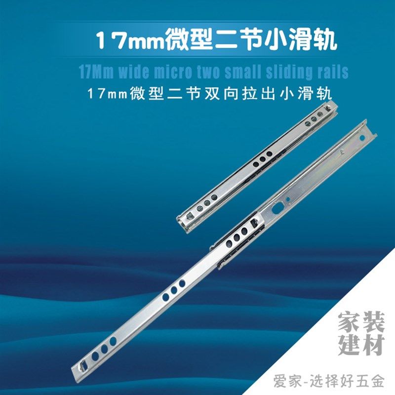 双向17mm宽滑轨二节小滑轨电子窄柜小型抽屉导轨直线2折滚珠轨道