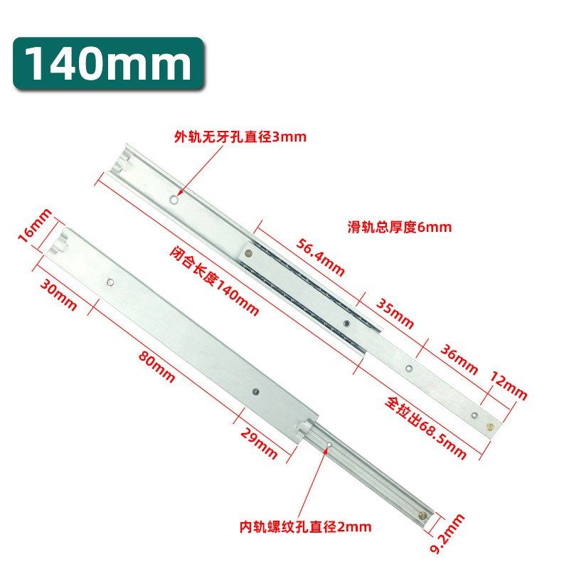 超短三节轨道静音滚珠导轨抽屉滑轨6寸抽屉轨道4寸5寸三折小滑轨
