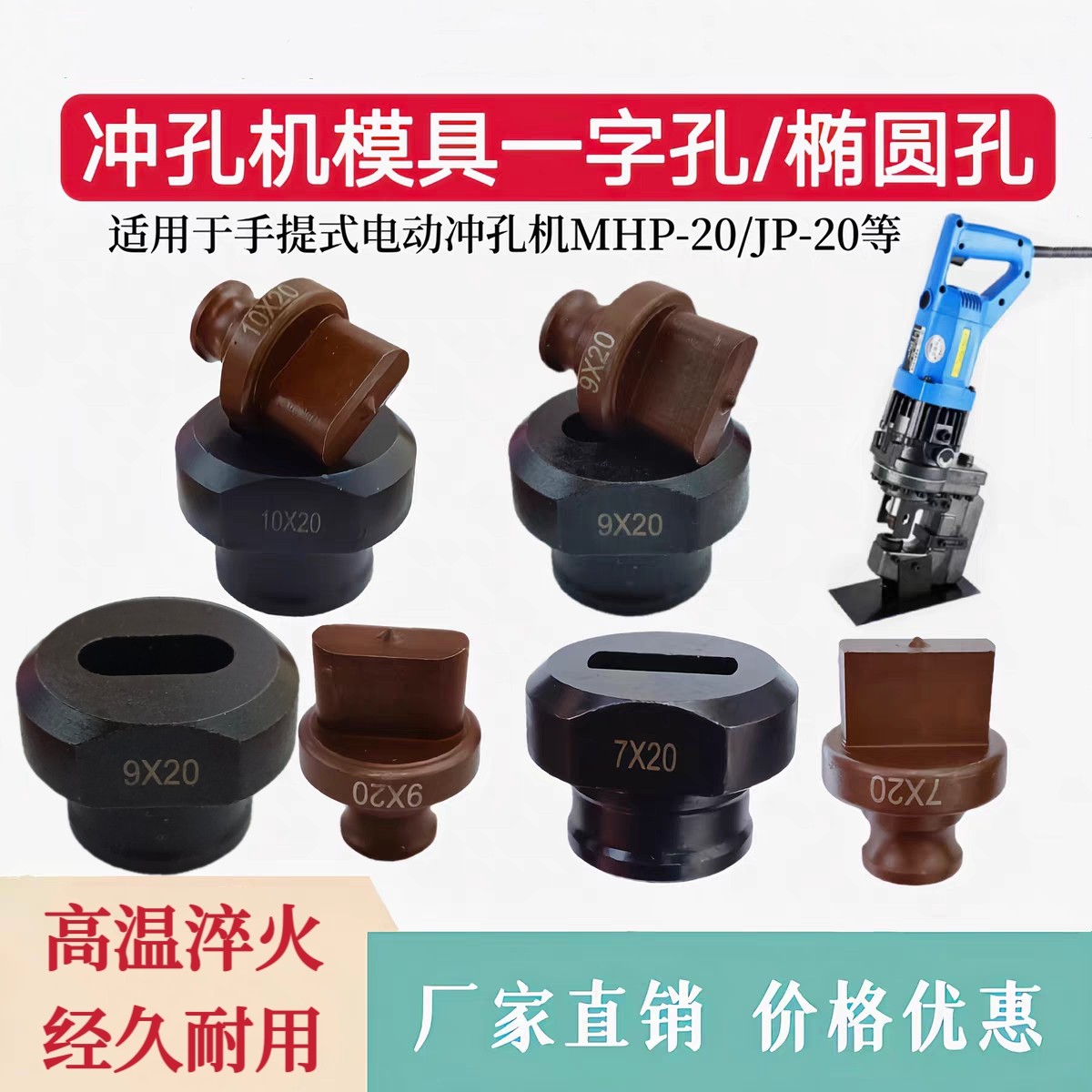 MHP-20手提式电动液压冲孔机模具铜铝排角铁打孔机冲头一字腰圆模