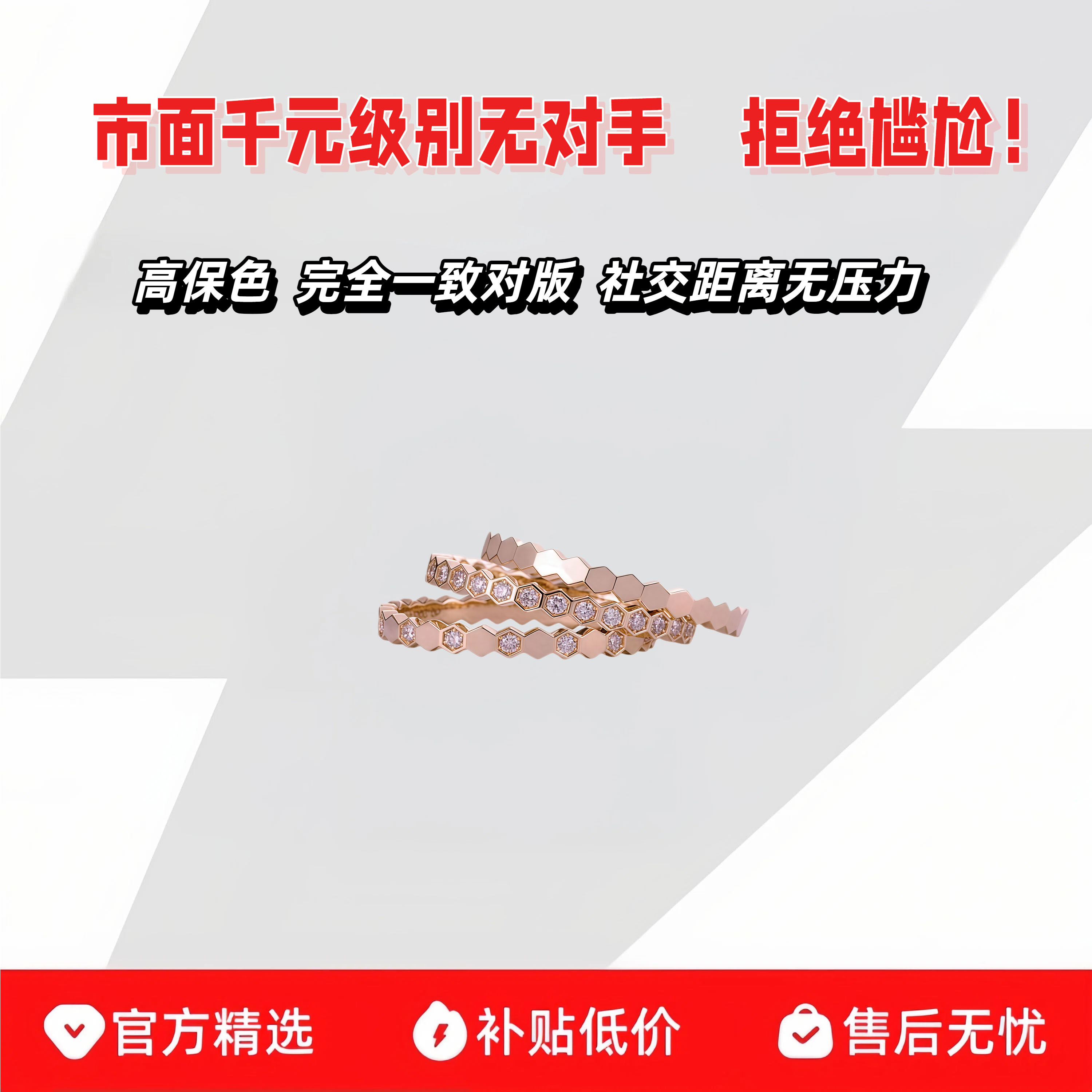 轻奢18k玫瑰金蛇骨戒指女满钻本命年彩金蛇形戒情人节送女友礼物