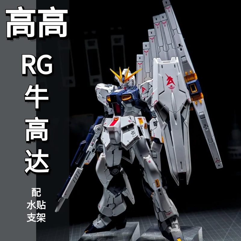 高高牛高达rg1/144 带浮游炮水贴支架国产机甲 拼装模型玩具手办
