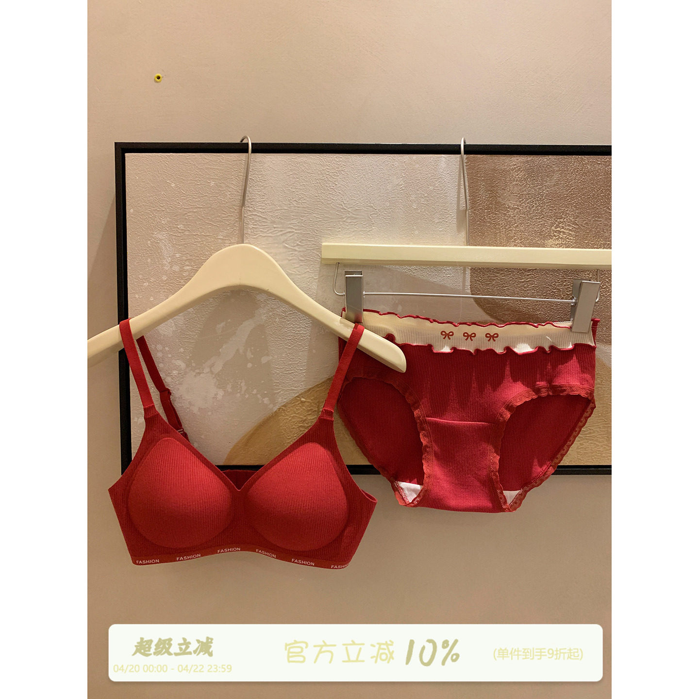馨帮帮Bra 红色本命年内衣裤套装女无痕舒适小胸聚拢结婚新娘文胸
