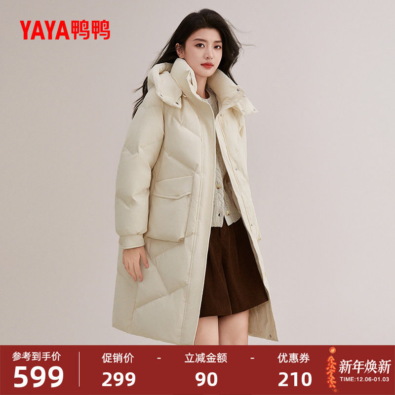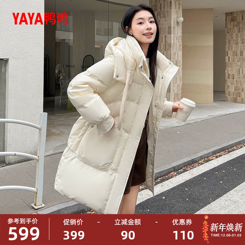 鸭鸭羽绒服女士2025秋冬反季过膝中长款宽松百搭加厚保暖鸭绒外套
