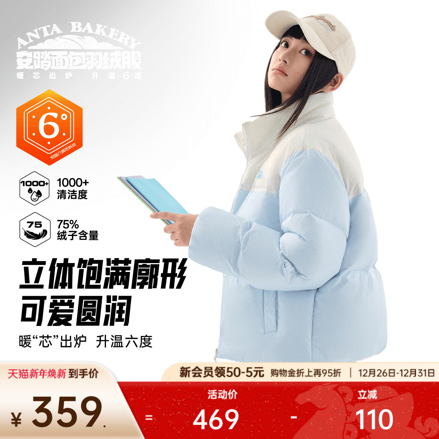 安踏面包羽绒丨防泼水高蓬松羽绒服女士2025冬季新款鸭绒保暖外套