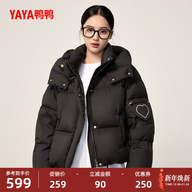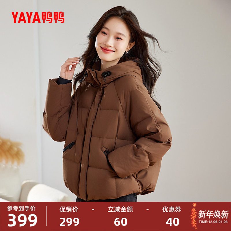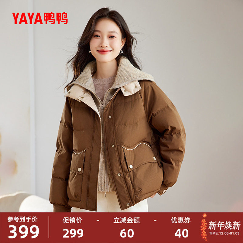 鸭鸭羽绒服女士2025冬季新品短款高级感修身显瘦鸭绒休闲厚外套S