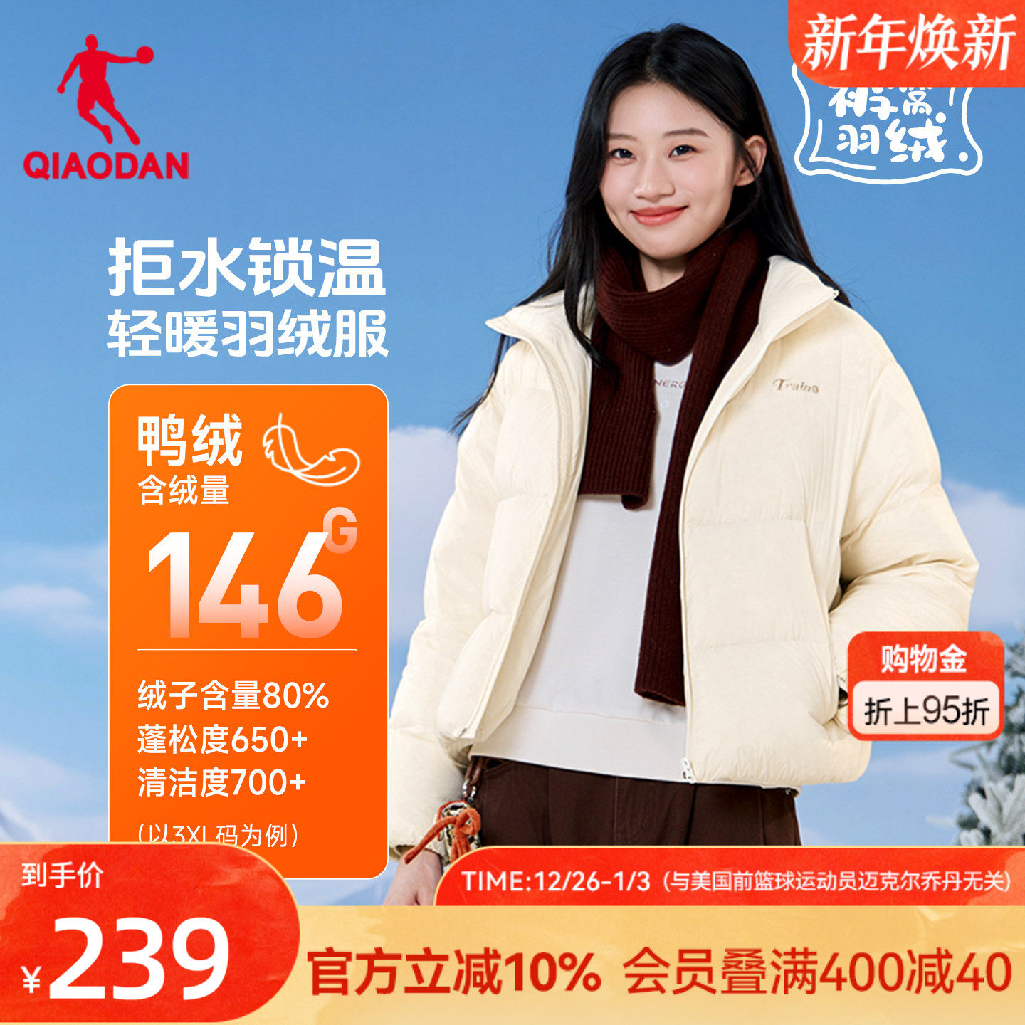 乔丹轻薄羽绒服女士2025冬季新款抗静电防风防寒防小雨外套面包服