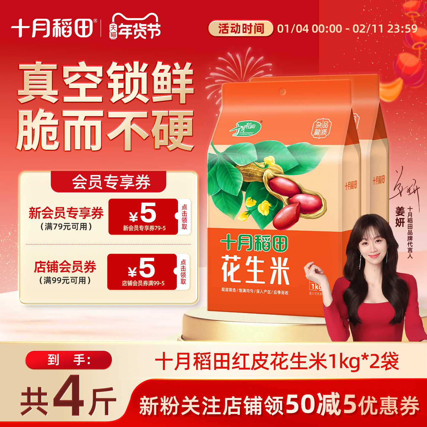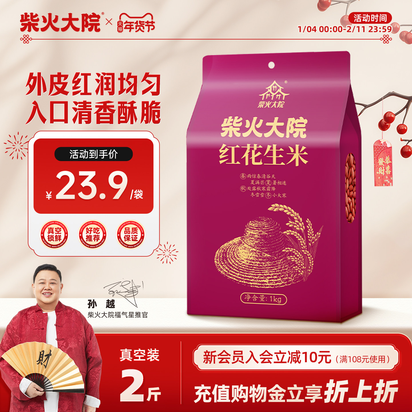 柴火大院红皮花生米官方旗舰店1kg*2真空装生花生颗粒饱满脆家用