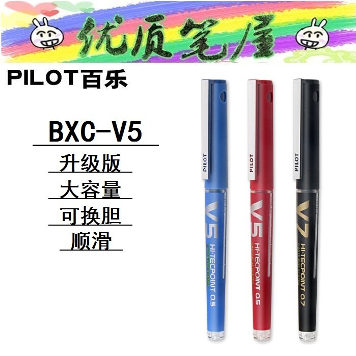 日本PILOT百乐BXC-V5直液式水笔大V5升级版黑笔红笔蓝笔书写顺滑不飞白可换墨囊BXS-IC