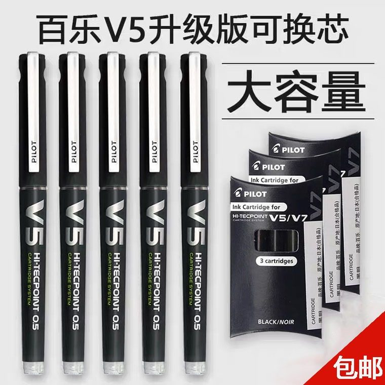 日本Pilot百乐大V5中性笔可换墨囊墨胆针管笔黑色考试刷题BXC-V5/V7升级版0.5/0.7直液式走珠笔官方旗舰店