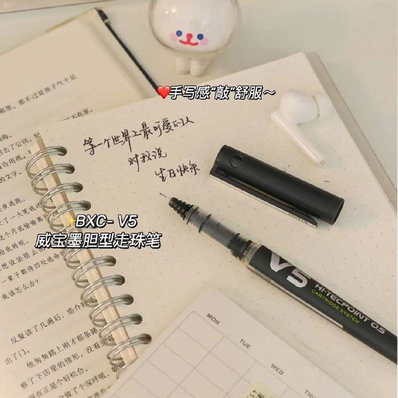 百乐BXC-V5直液式走珠笔0.5mm全针管PILOT可换墨囊速干防漏顺滑手账本适配斑马U-100学生刷题中考办公签字笔