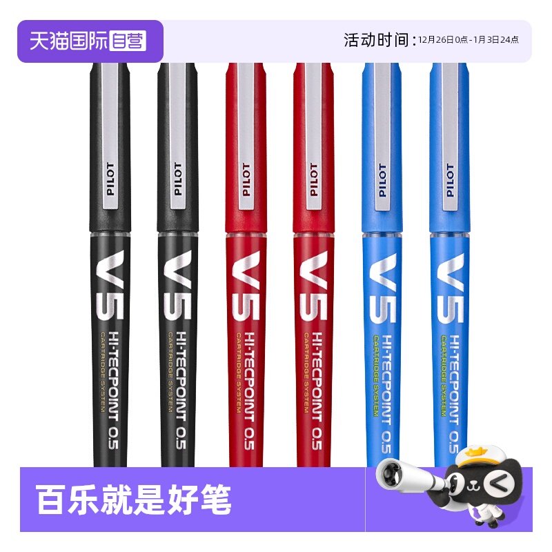 日本Pilot百乐V5升级版直液式走珠笔v7针管水笔可换墨囊墨胆bxc-v5黑色考试中性笔学生用考研旗速干舰店官网