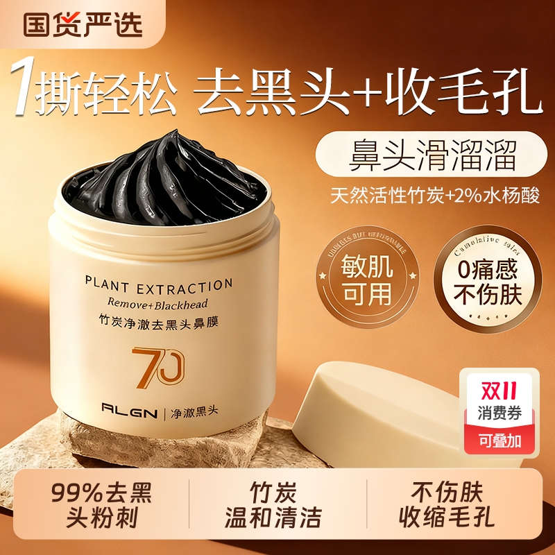 竹炭去黑头鼻贴撕拉式收缩毛孔粉刺深层清洁面膜控油男女专用泥膜