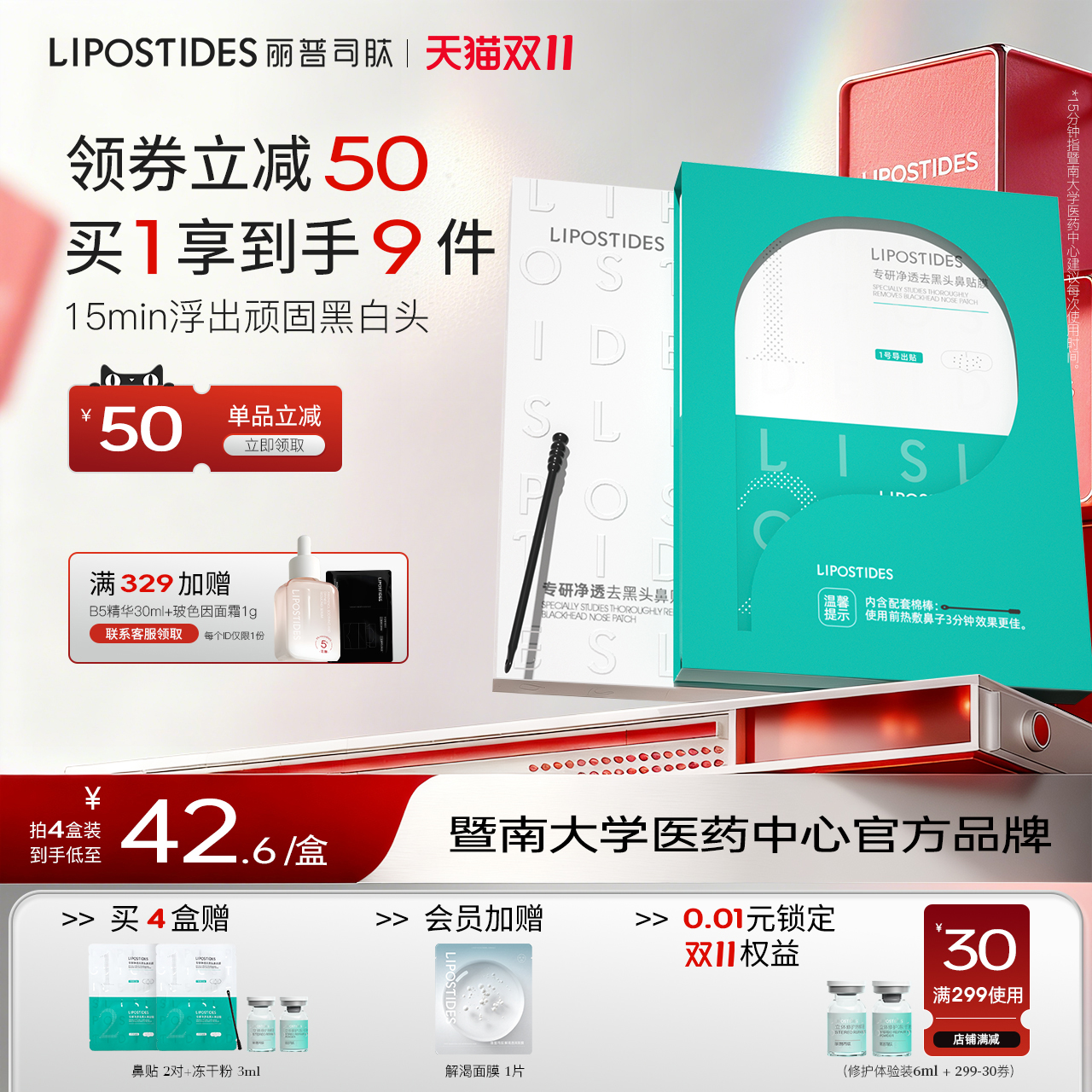 【立即抢购】丽普司肽去黑头鼻贴收缩毛孔祛黑白头深层清洁男士女