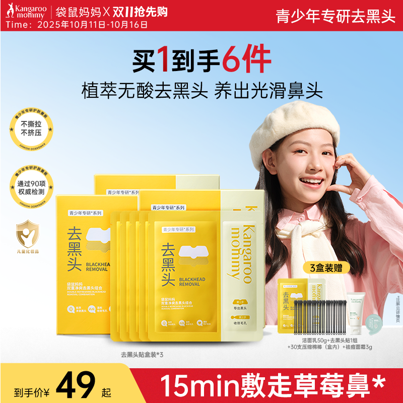 袋鼠妈妈青少年去黑头鼻贴导出贴收缩毛孔温和深层清洁男女草莓鼻