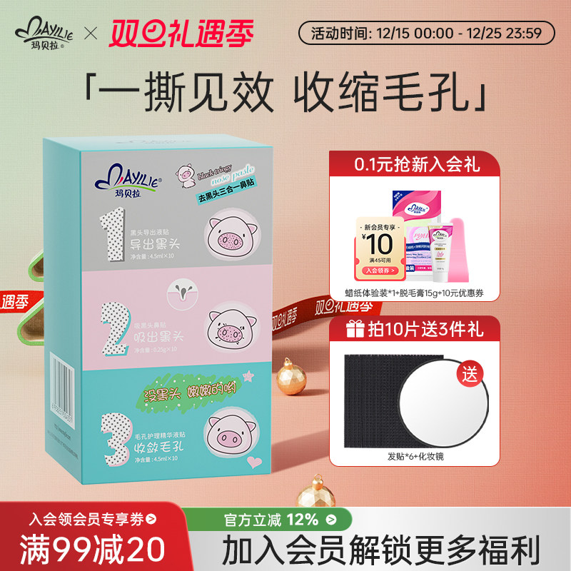 玛贝拉去黑头鼻贴收缩毛孔女男士专用清洁神器祛吸粉刺鼻子猪鼻贴