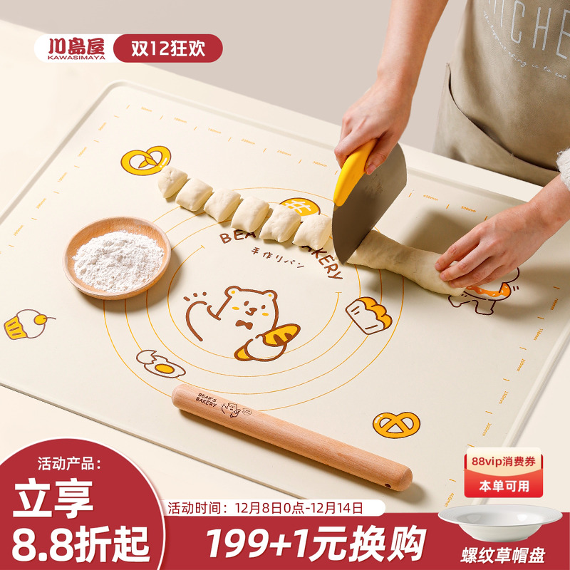 川岛屋揉面垫加厚食品级硅胶面板和面垫擀面杖家用三件套烘焙工具