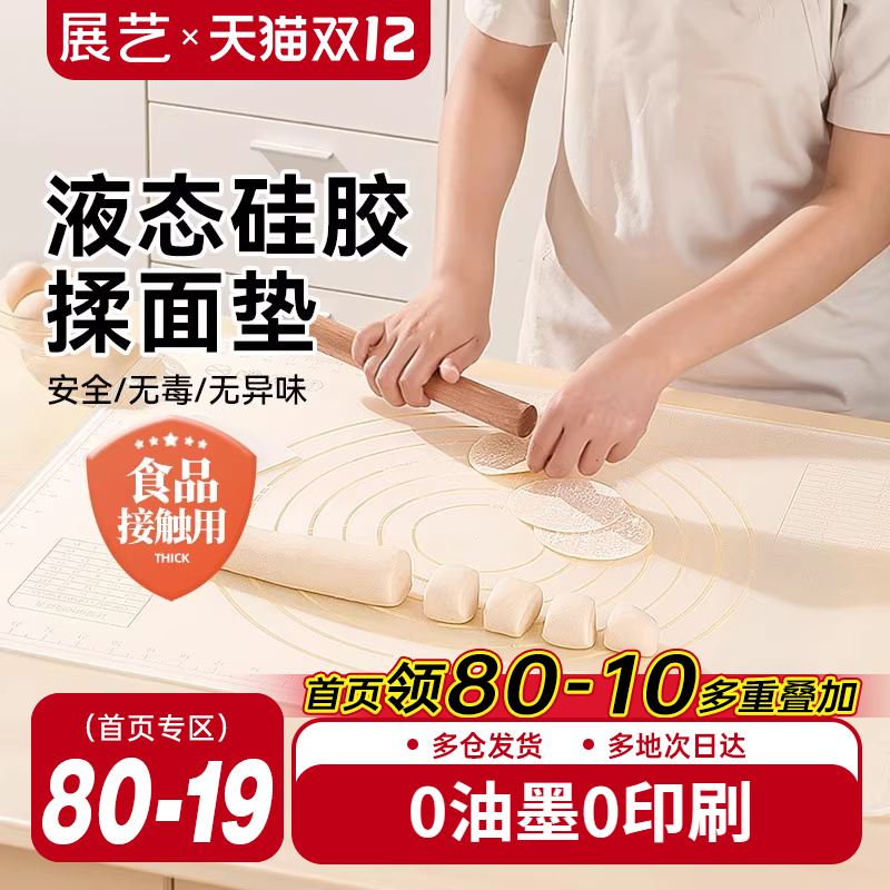 展艺硅胶揉面垫加厚食品用和面家用擀面垫子厨房烘焙月饼工具专用
