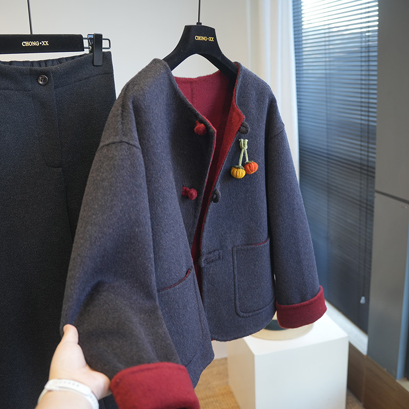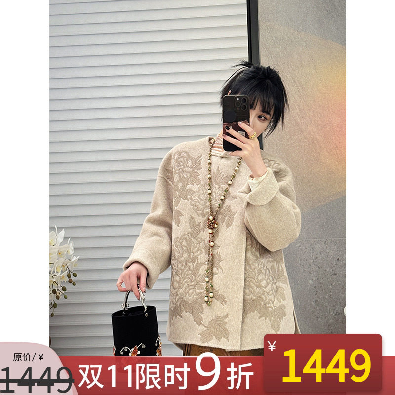 新中式国风羊绒羊毛盘扣双面呢圆领短款呢大衣女毛呢外套秋冬A80R