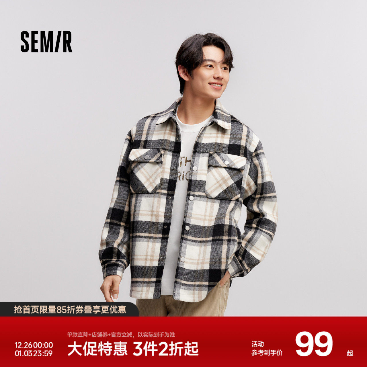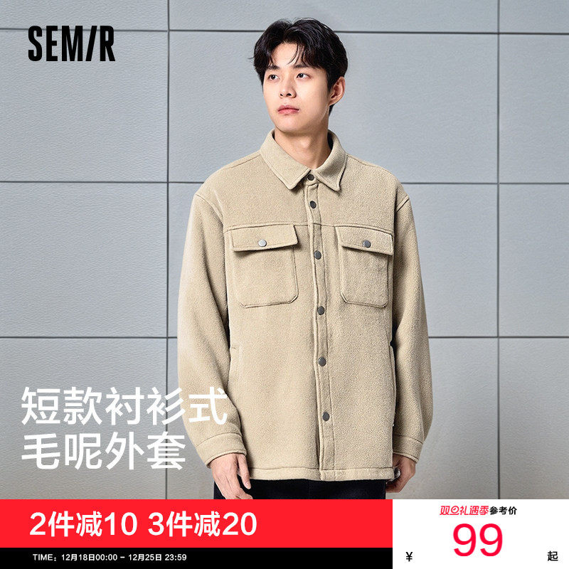 森马毛呢外套男冬季短款呢大衣衬衫式翻领上衣复古时尚百搭夹克潮