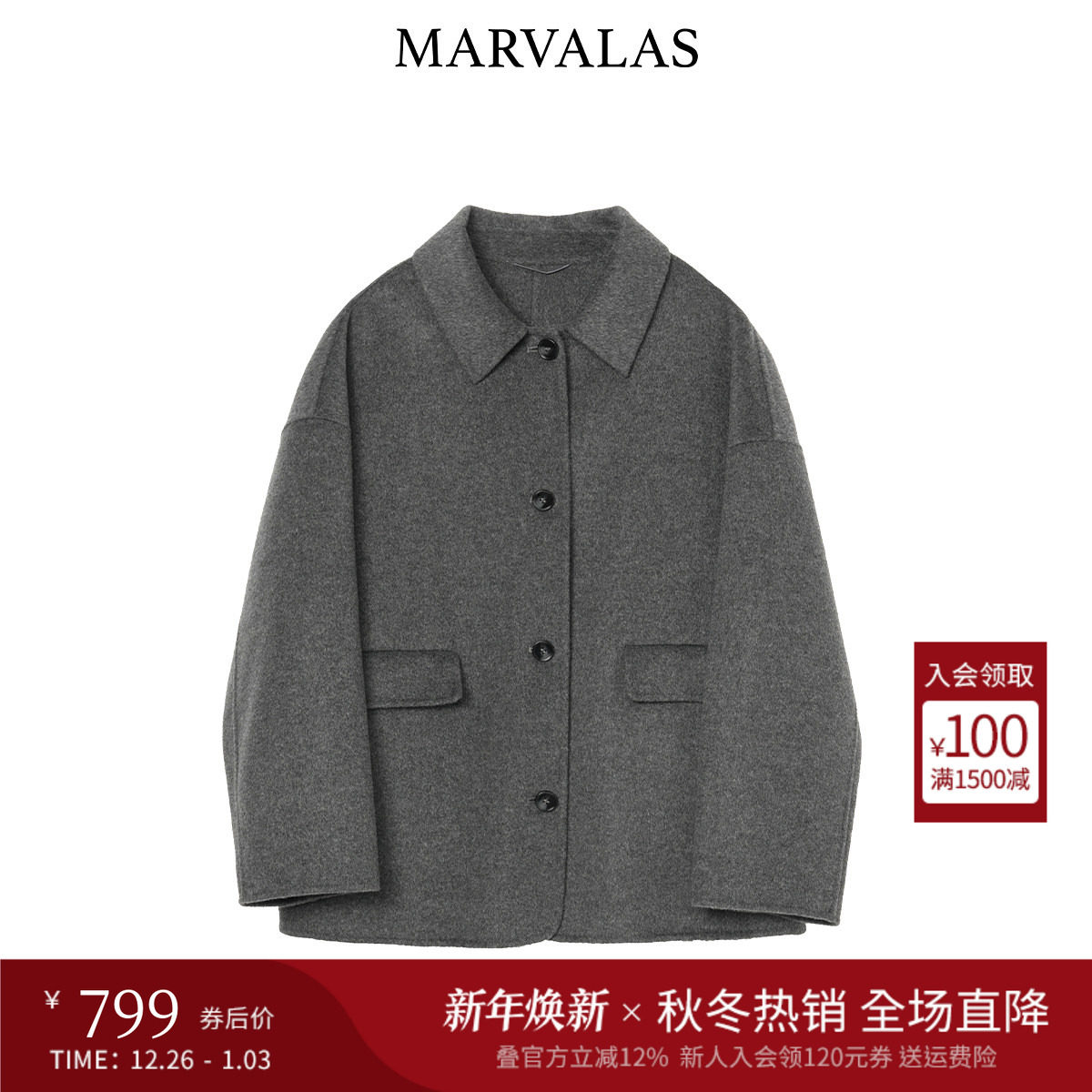 [羊毛]Navigare意大利小帆船灰色休闲毛呢外套女冬款短款呢大衣