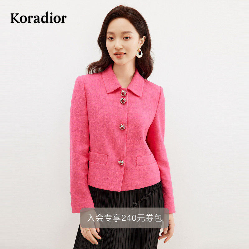JCAESAR WOMEN 系带短款呢大衣 可拆卸垫肩 奥地利羊毛混纺外套