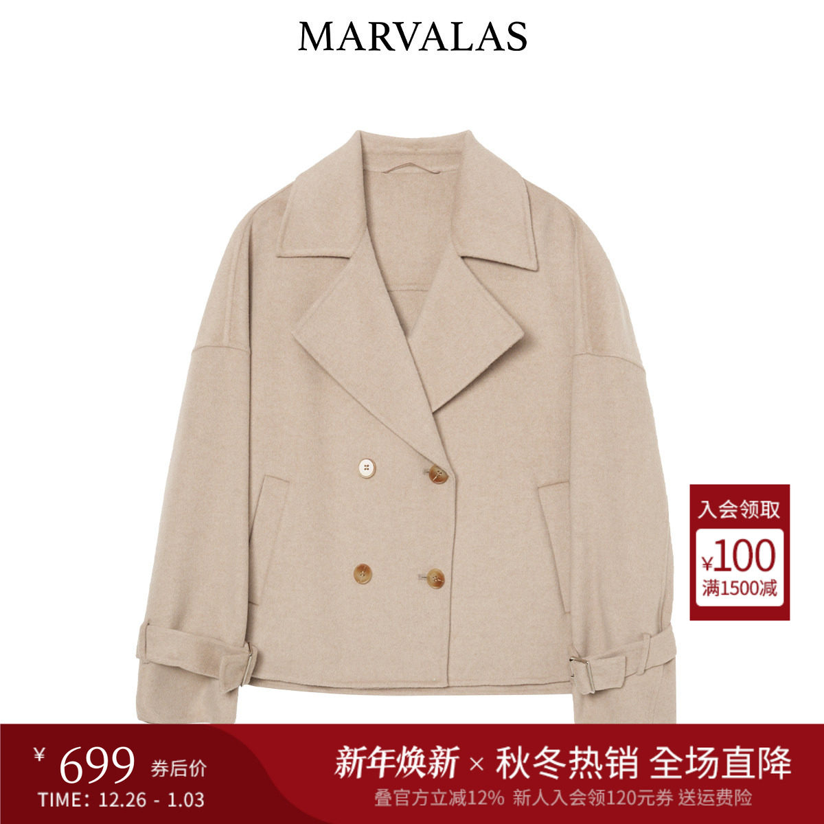 曼德诗山羊绒毛呢外套2025冬季新款气质翻领百搭绵羊毛短款呢大衣