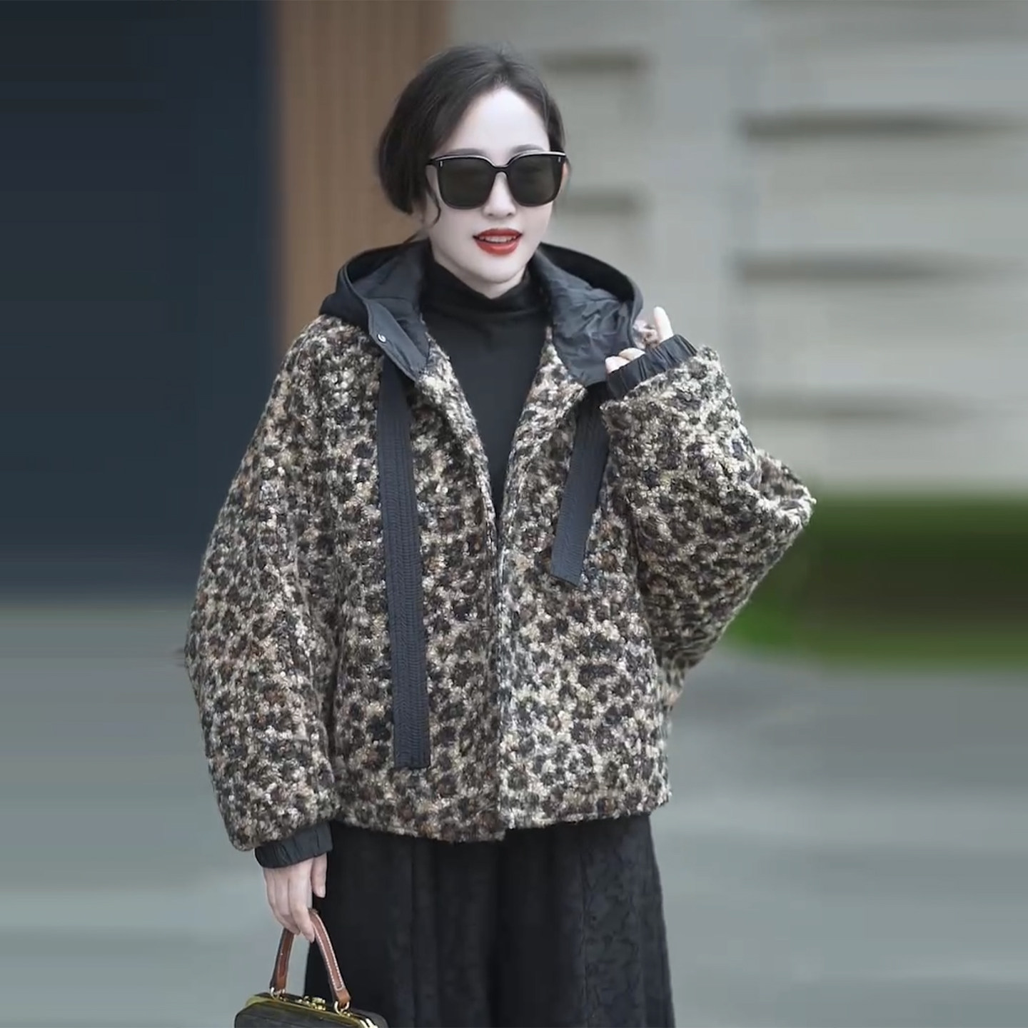 欧货洋气妈妈连帽加棉毛呢外套冬季新款蝙蝠袖宽松大码短款呢大衣