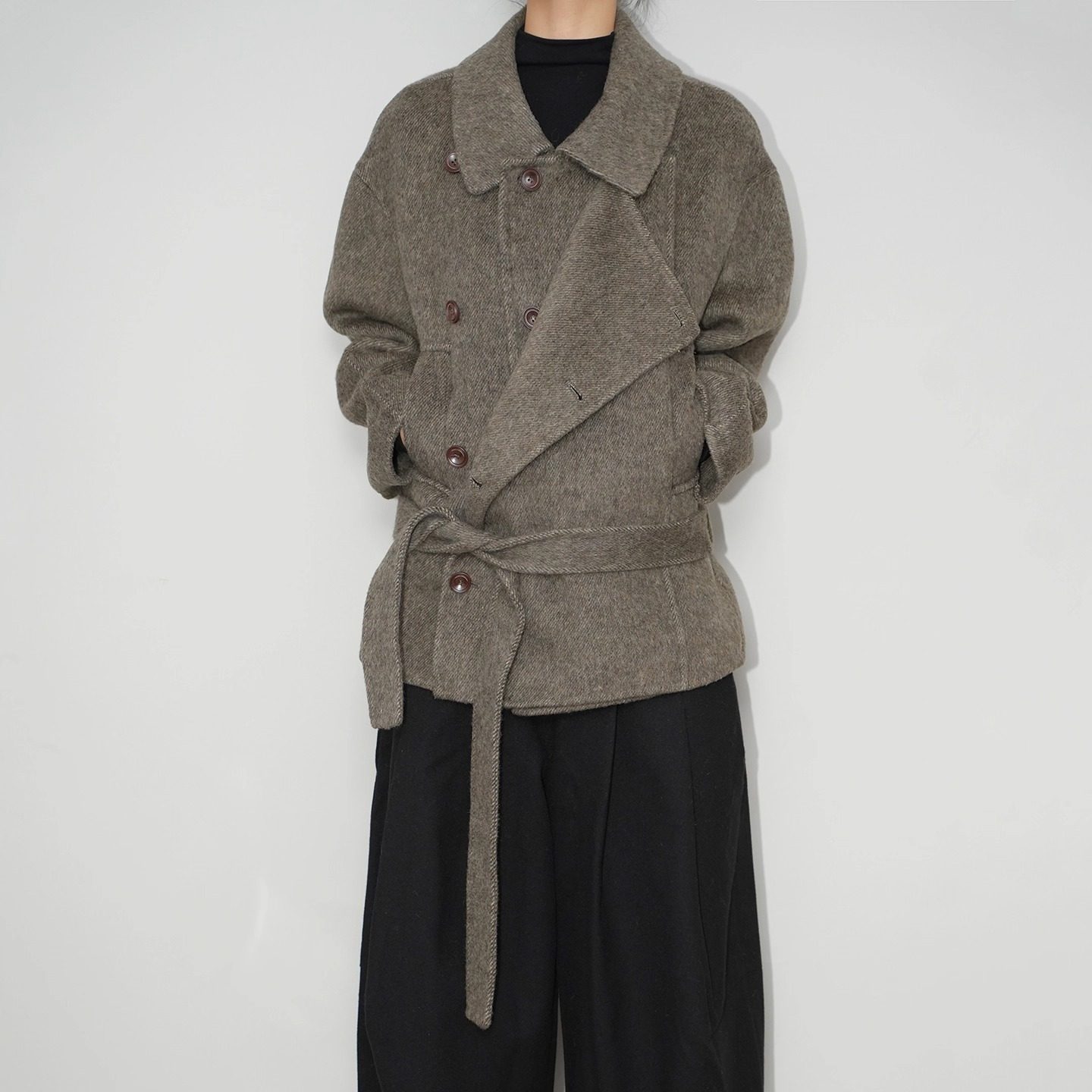 AIRROOM多穿领复古系带双层门襟廓形防风腰带短款呢大衣外套
