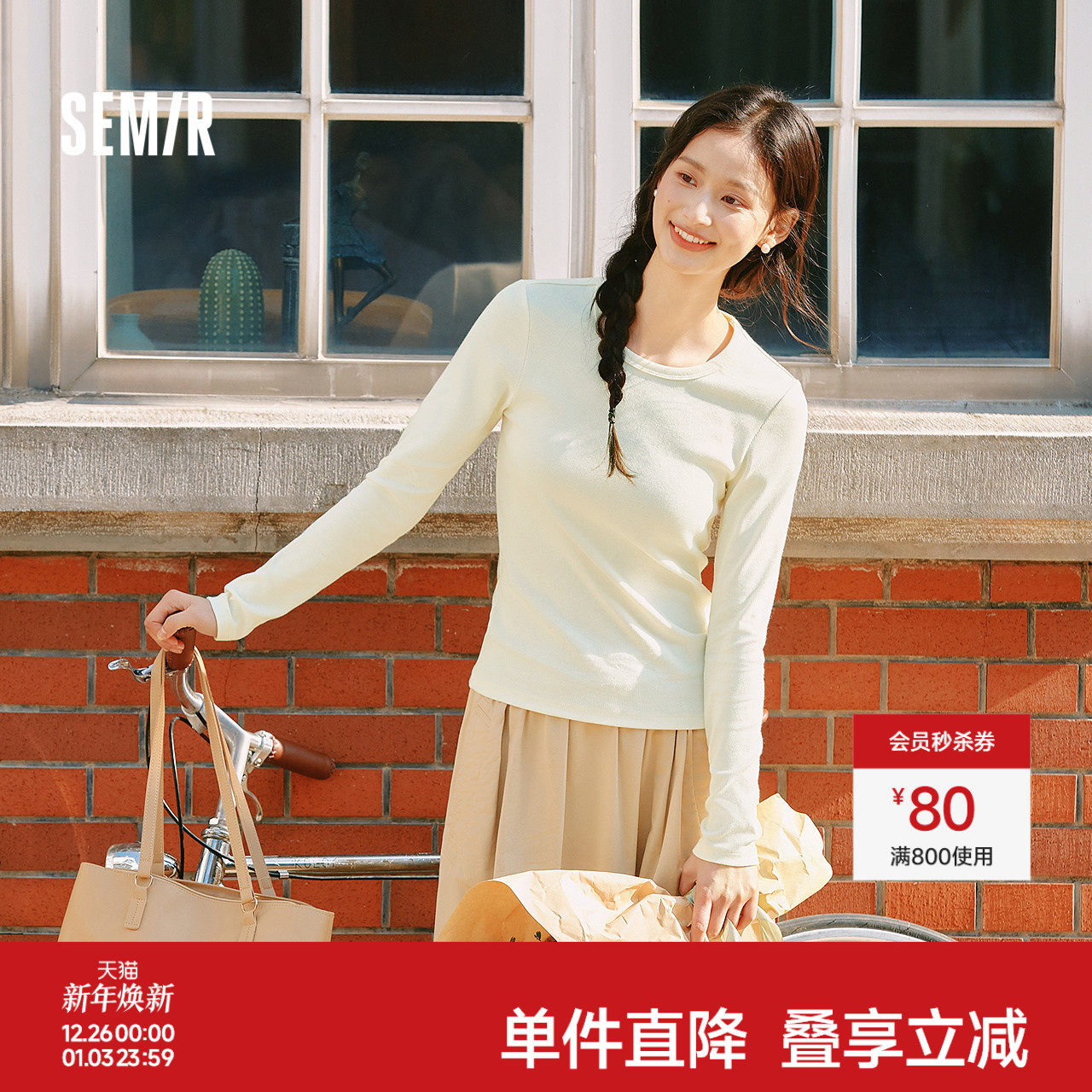 森马长袖T恤女春季正肩紧身圆领打底衫女士显瘦基础款百搭套头衫
