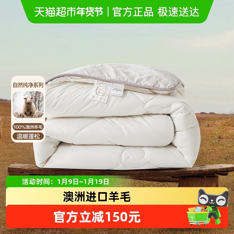 富安娜澳洲进口羊毛被子冬被保暖加厚被芯春秋被学生宿舍四季被子