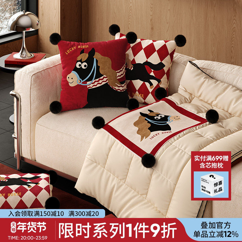 御尚居马年新款红色抱枕被两用车载办公室午睡毯子二合一新年礼物