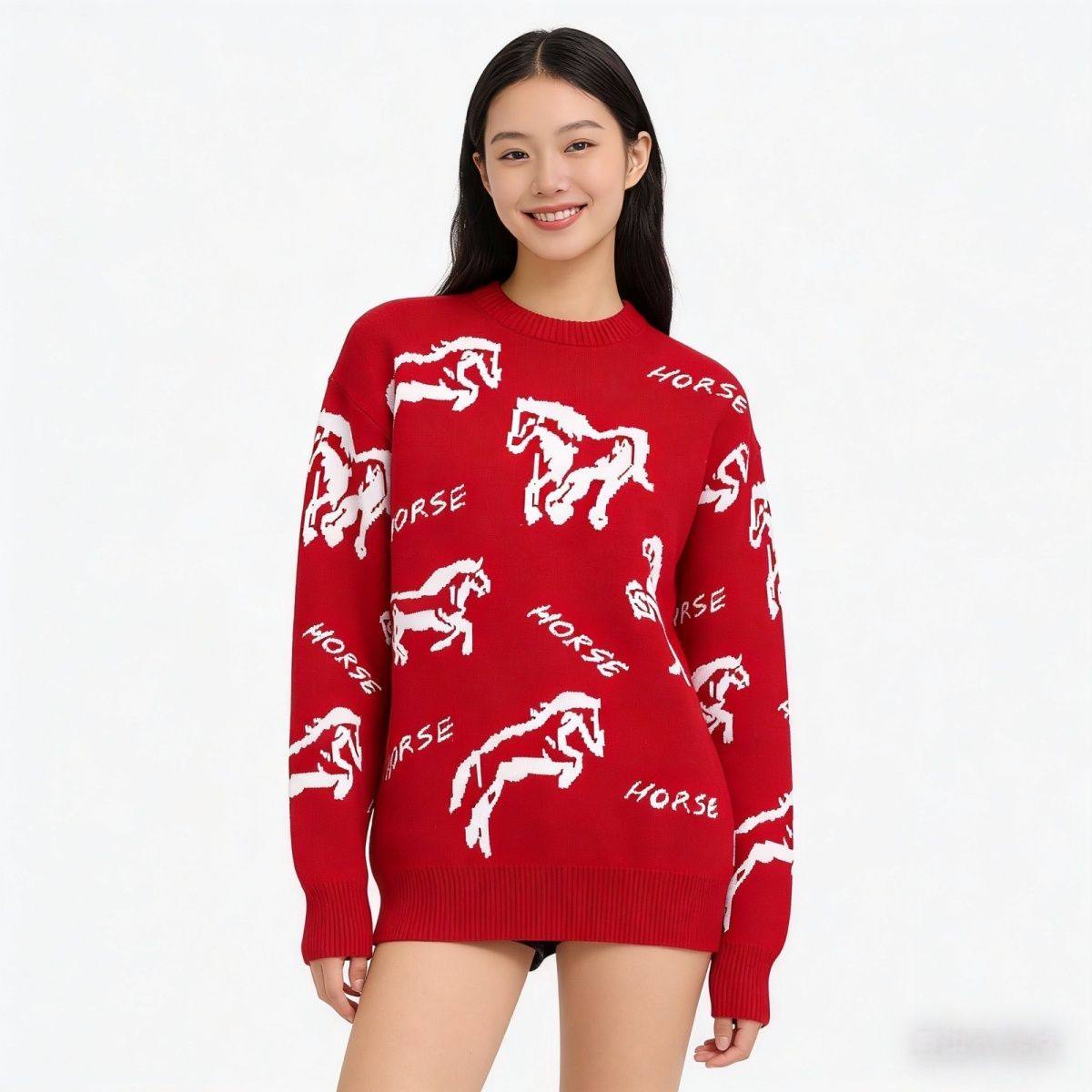 红色毛衣新款宽松大码过马年本命年加厚保暖慵懒风中长款女针织衫