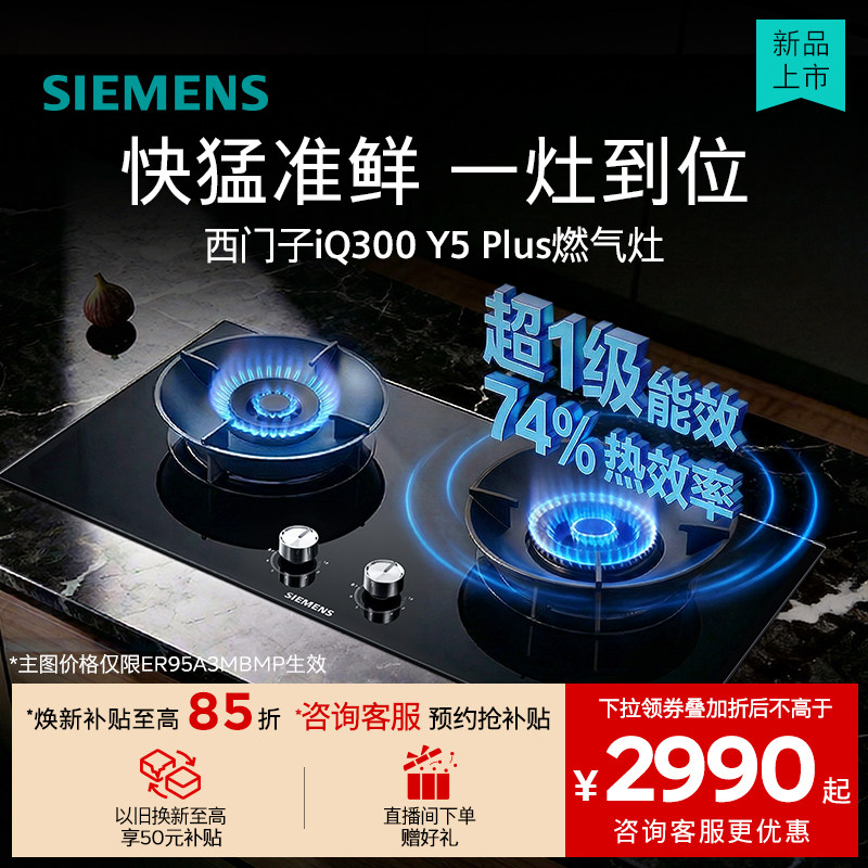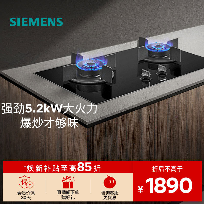 西门子嵌入式燃气灶具5.2大火力厨房家用双灶玻璃天然气N5MB/95A