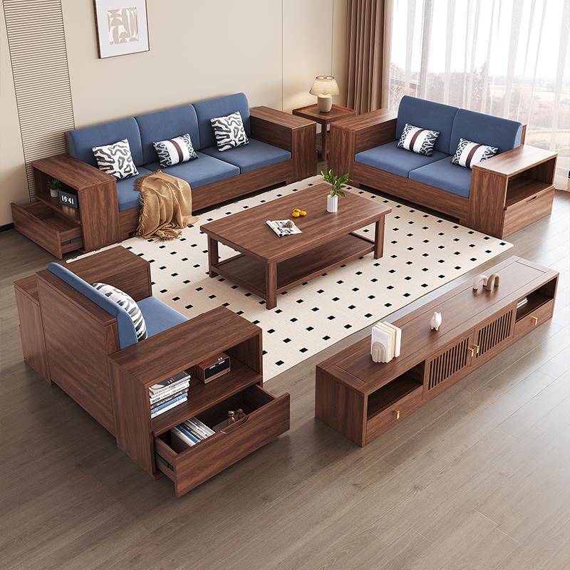 胡桃木实木沙发客厅新中式现代简约冬夏两用大小户型储物原木沙发