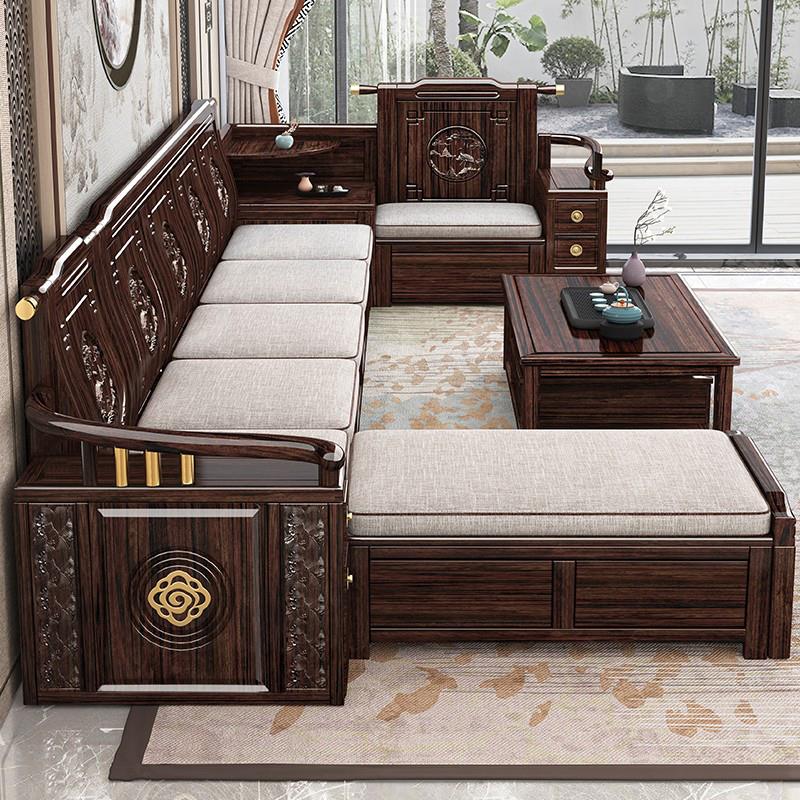 新中式紫金檀木实木沙发全实木客厅大小户型冬夏两用储物原木沙发
