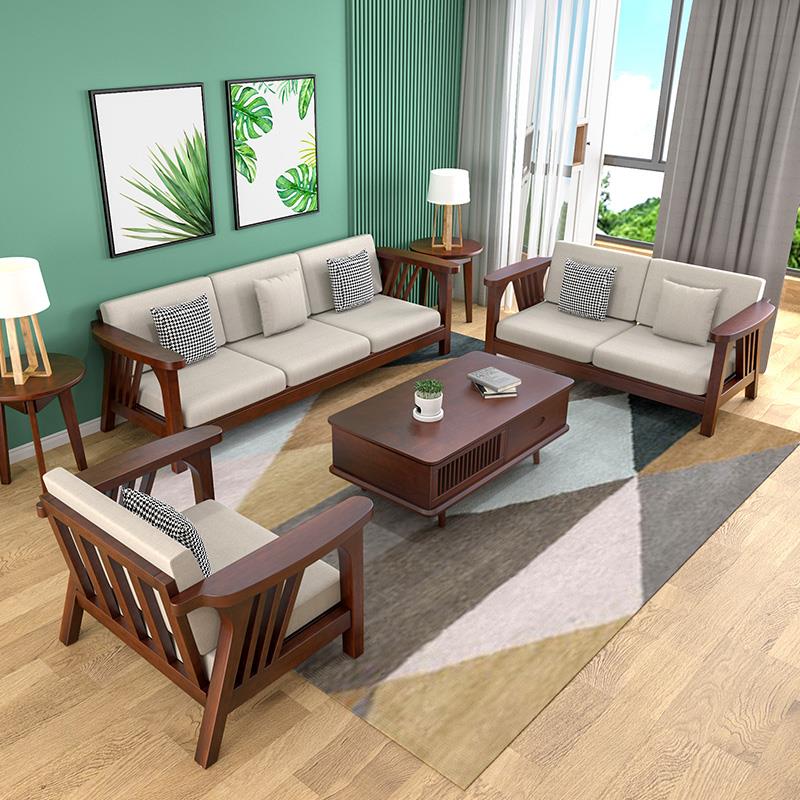 实木沙发家用客厅全实木组合小户型现代简约出租屋经济型原木沙发