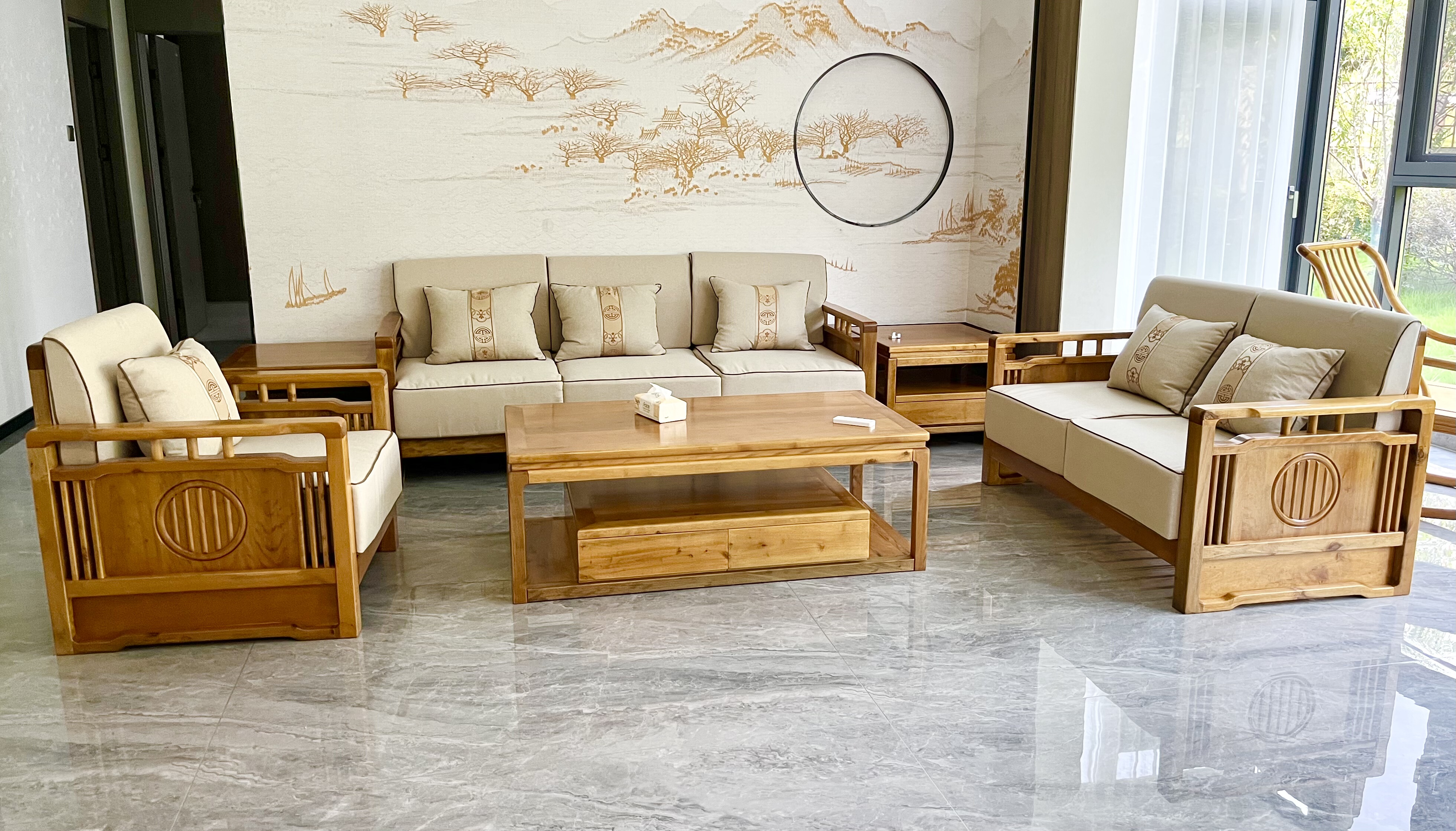 - 新中式现代实木沙发