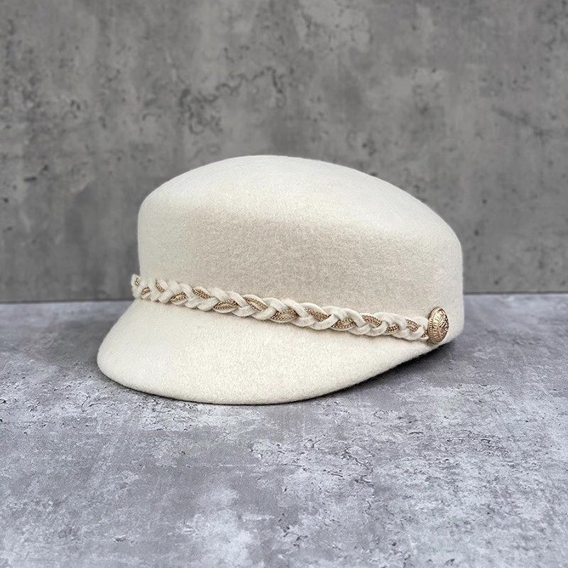 日本款编织链子装饰羊毛呢礼帽女秋冬英伦复古鸭舌帽马术帽棒球帽