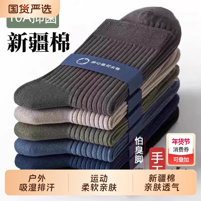 新疆棉袜子男士防臭7A抗菌吸汗秋冬款加厚中筒袜男款冬天运动长袜