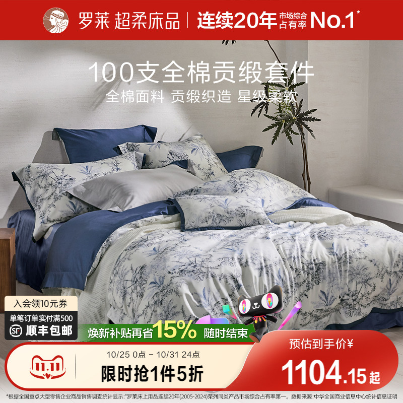罗莱家纺25秋冬新品100支新疆棉四件套全棉贡缎双人床套件被套