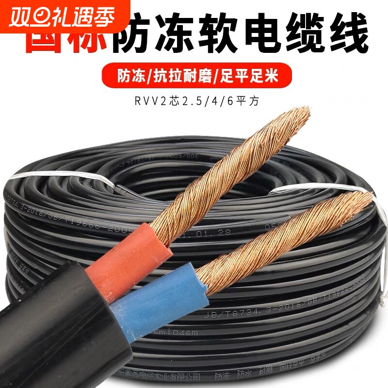 rvv电源线2芯3芯4芯1.52.54610平方三相电缆护套线家用防水防冻