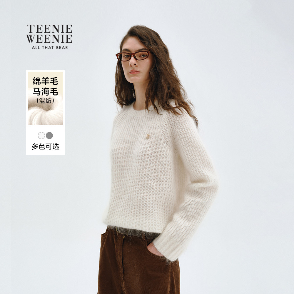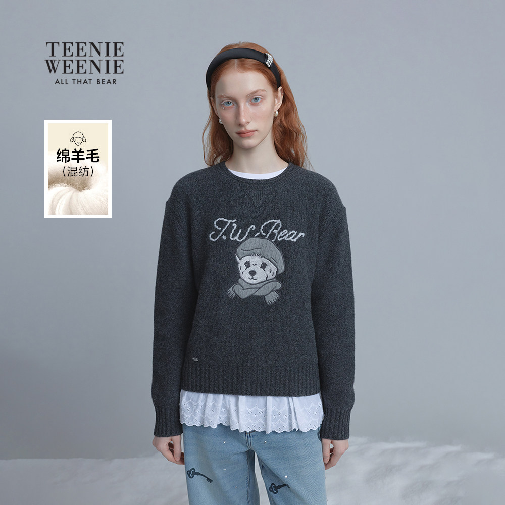 TeenieWeenie小熊女装毛针织衫25冬新款休闲日常大熊刺绣圆领毛衣