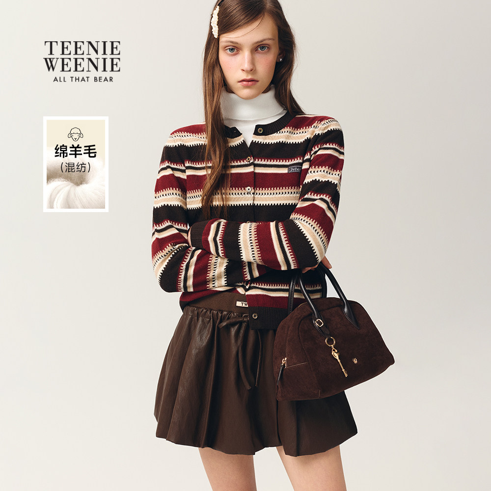 【四季针织】TeenieWeenie小熊女装2025冬新款绵羊毛开衫复古毛衣
