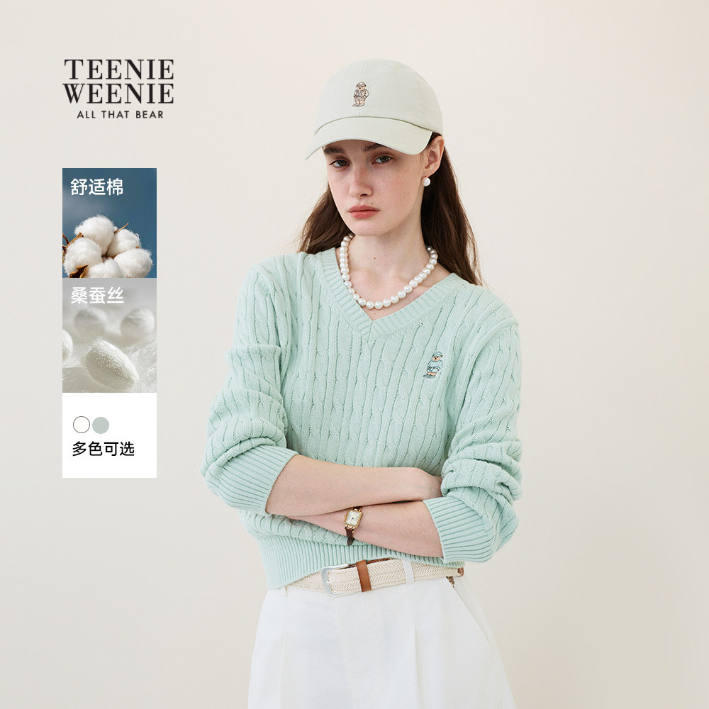 TeenieWeenie小熊女装毛针织衫26春季新款学院风气质V领绞花毛衣
