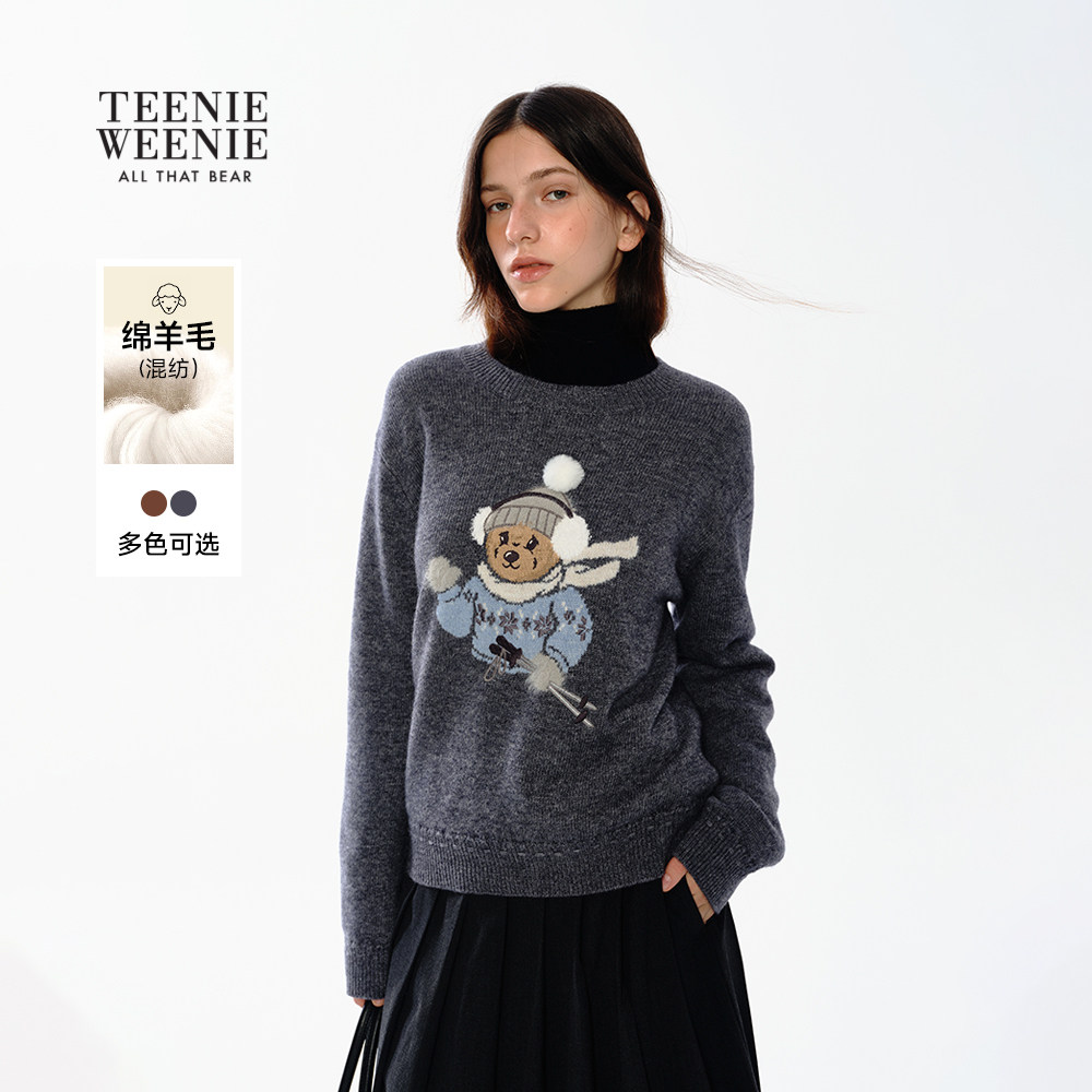 TeenieWeenie小熊女装含绵羊毛针织衫冬季2025新款圆领提花毛衣
